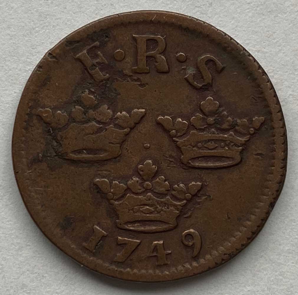 1749 Sweden Fredrik I 1 Öre Kopparmynt