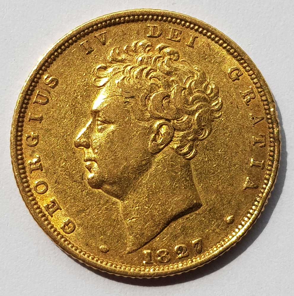 The 1827 sovereign was issued during the reign of King George IV. King George IV's Bare Head can be seen on the obverse of the coin, a shield of arms is depicted on the reverse. The sovereign is made of 22 carat gold, and weighs 7.98 grams. It contains 0.2354 ounce of fine gold. Only 2,266,629 sovereigns were struck in 1827. It is very unlikely that all of these still exist today, as many have been melted down over the last two centuries. Looking to SELL GOLD SOVEREIGNS? Please visit our Prices We Pay – Sovereigns Page Sovereigns issued from 1817 to 1837 are often described as 'Early King' sovereigns. King George III, King George IV and King William IV are all depicted on sovereigns minted during these years. M J Hughes Coins would be very interested in purchasing any Early King sovereigns you may have. We often pay high premiums over the gold price for such coins. The value of your sovereign will be heavily dependent on the date and condition. King George IV was crowned king in 1821, he ascended to the throne upon the death of his father King George III. He ruled for 9 years, and died in 1830. He was succeeded by his younger brother, King William IV. British Sovereigns issued from 1817 to 1870 were only minted in London. A gold sovereign has a face value of £1, and is still a legal tender coin today (Although you wouldn’t want to spend it for a £1 anymore!). The 1827 sovereign would make a fine addition to any collection. M J Hughes Coins are members of the British Numismatic Trade Association – www.bnta.net. We are coin dealers based in Alton, Hampshire (Where we have a shop location). We are always interested in purchasing any coins that you may have for sale, particularly Royal Mint issues and gold coins. We are happy to make no obligation offers, and purchase from a single coin to an entire gold coin collection. You would be more than welcome to visit our shop, or we are happy to travel to you. Please get in contact with us if you would like to discuss further.Summary
