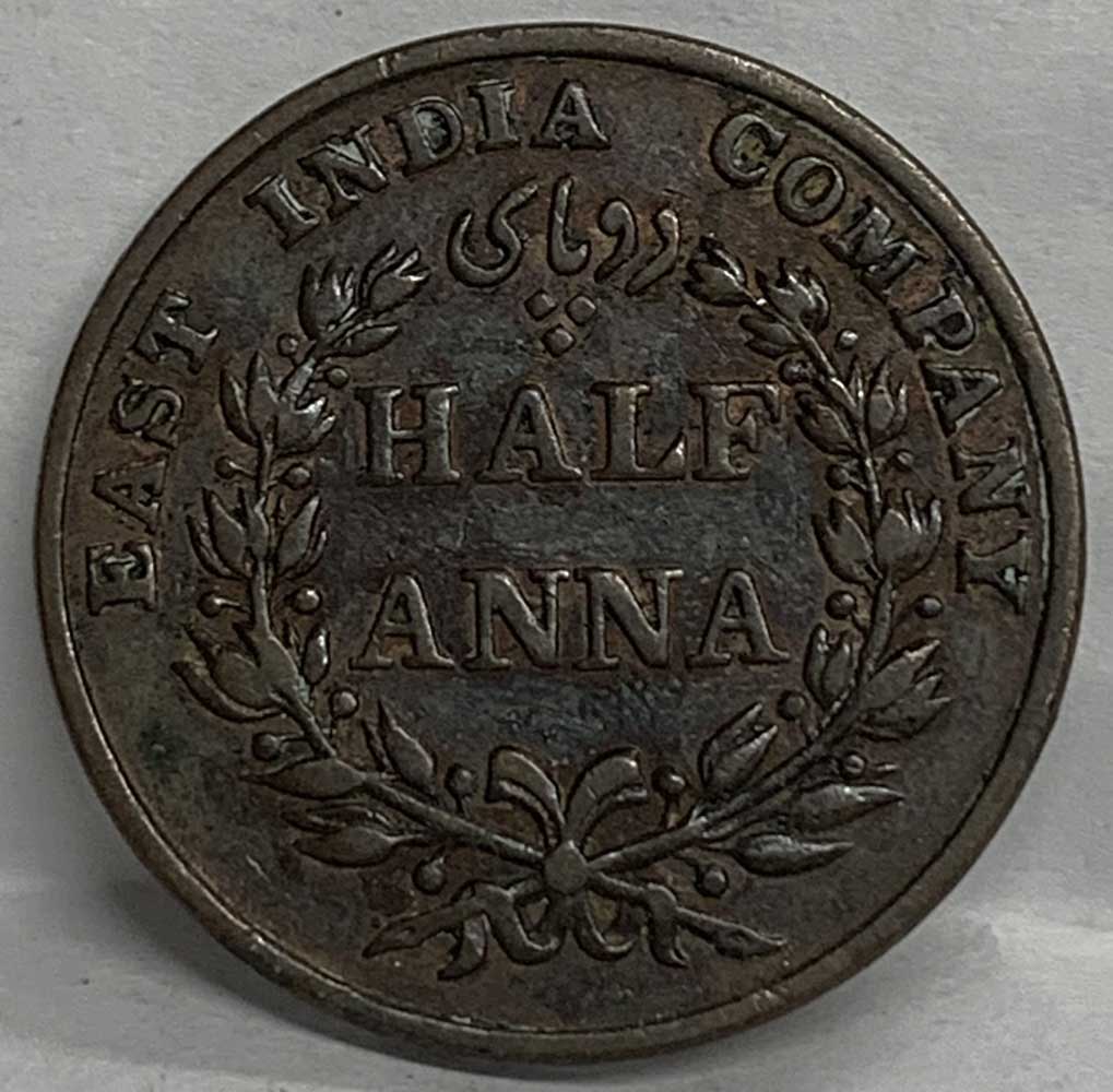 1835 East India Company Half Anna Coin metal: CopperSummary