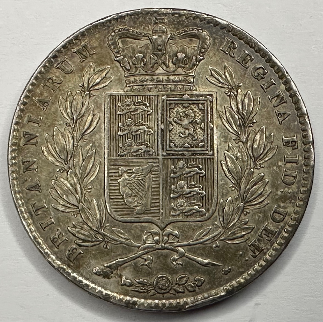 The coin is made of sterling silver (0.925 fine). Queen Victoria's young head can be seen on the obverse of the coin, with William Wyon's famous crowned shield depicted on the reverse.