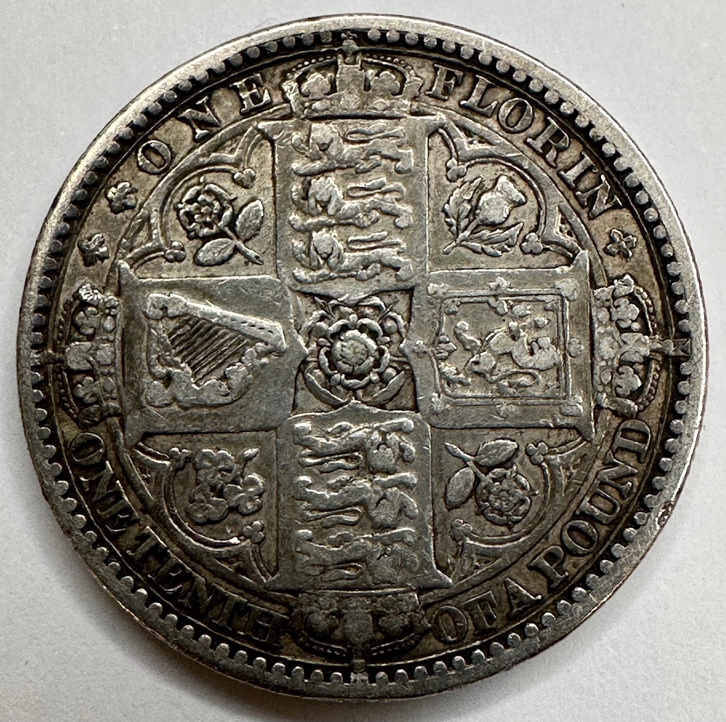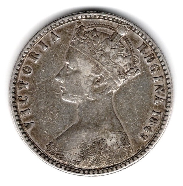 Featuring a Gothic portrayal of Queen Victoria on the obverse, and crowned cruciform shields on the reverse. Known as 'Godless' due to the words 'Dei Gratia' (Latin for 'By the Grace of God') being omitted from the design.