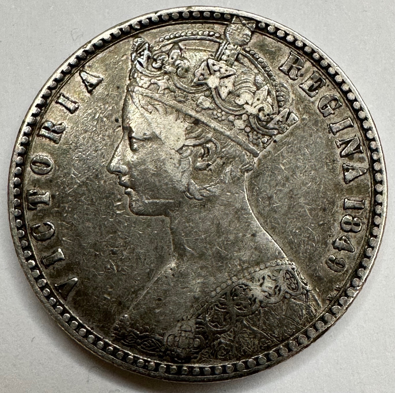 1849 Queen Victoria Godless Silver Florin