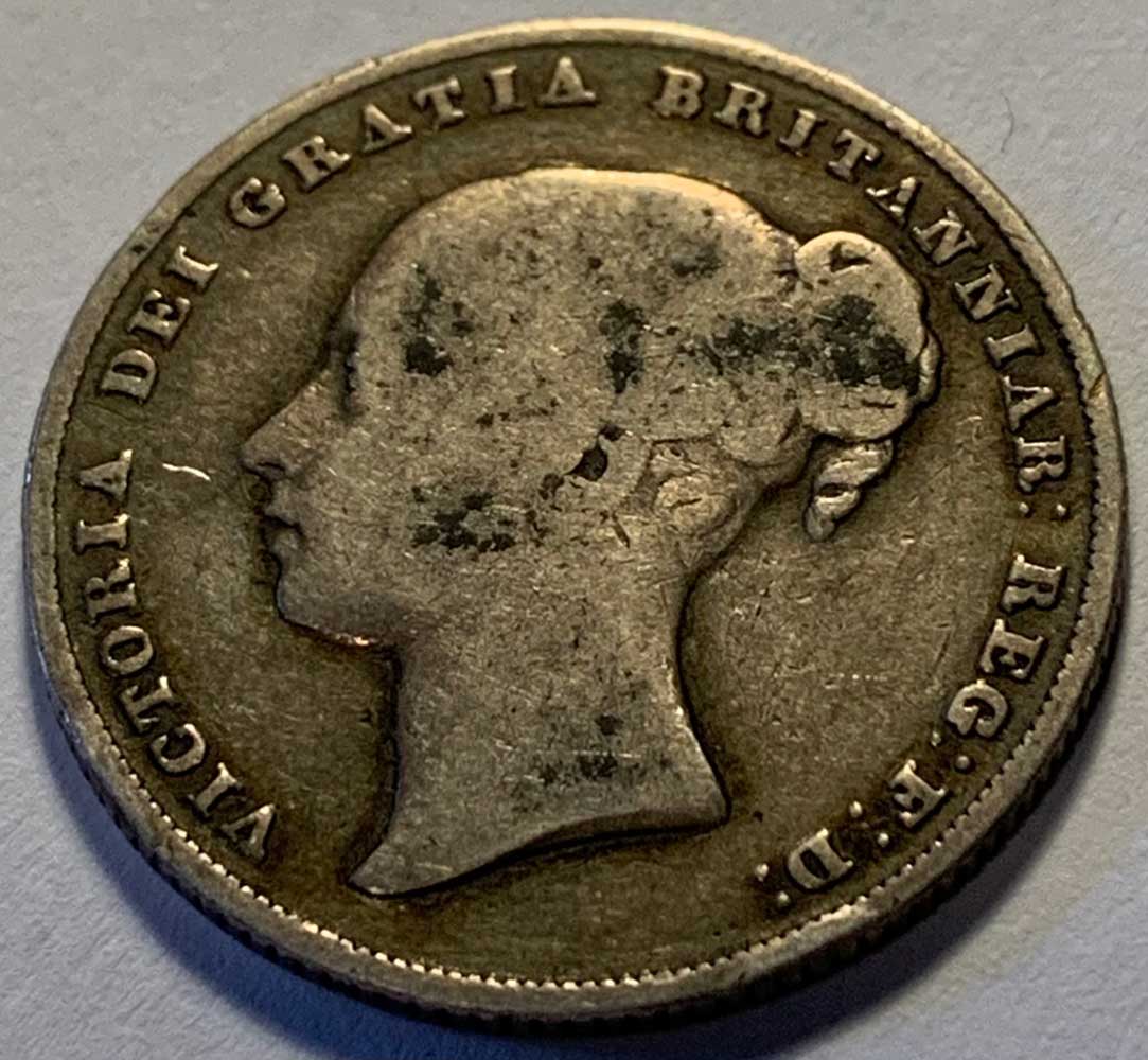 1858 Queen Victoria Silver Shilling Coin metal: SilverSummary