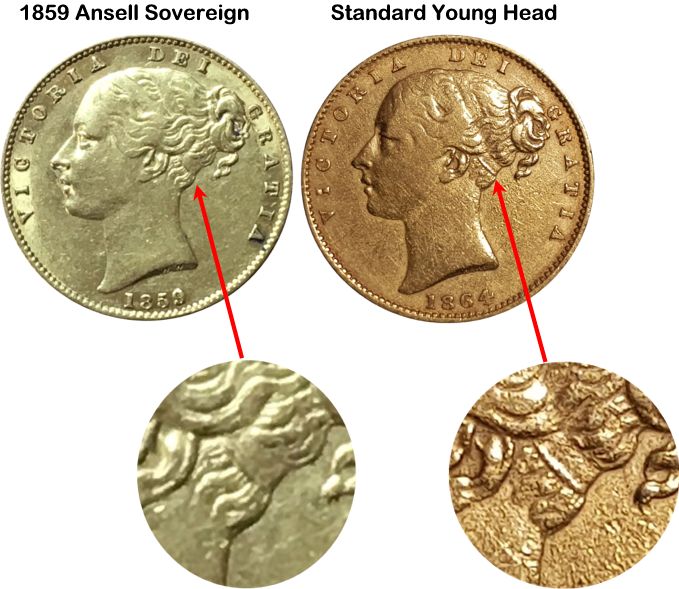The 1859 Gold Sovereign Ansell is an example of the Gold Sovereign and is one of the most ubiquitous of all coins and much sought after by both coin collectors and bullion investors. Sovereigns have been minted since 1817 (in Britain 1817-1917, 1925 and 1957 on). At coins fairs you often hear the dealers refer to these coins as Sovs.