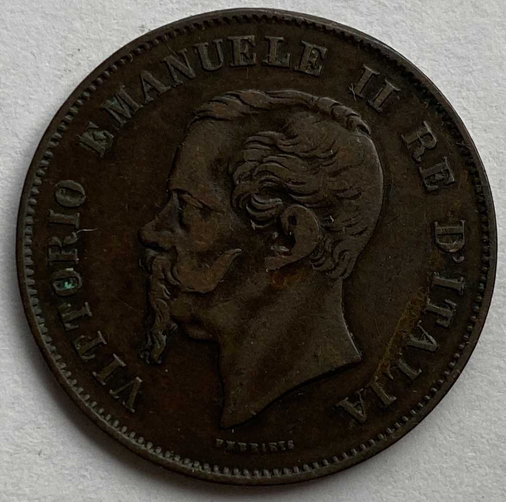 1861 Italy Vittorio Emanuele II Five Centesimi