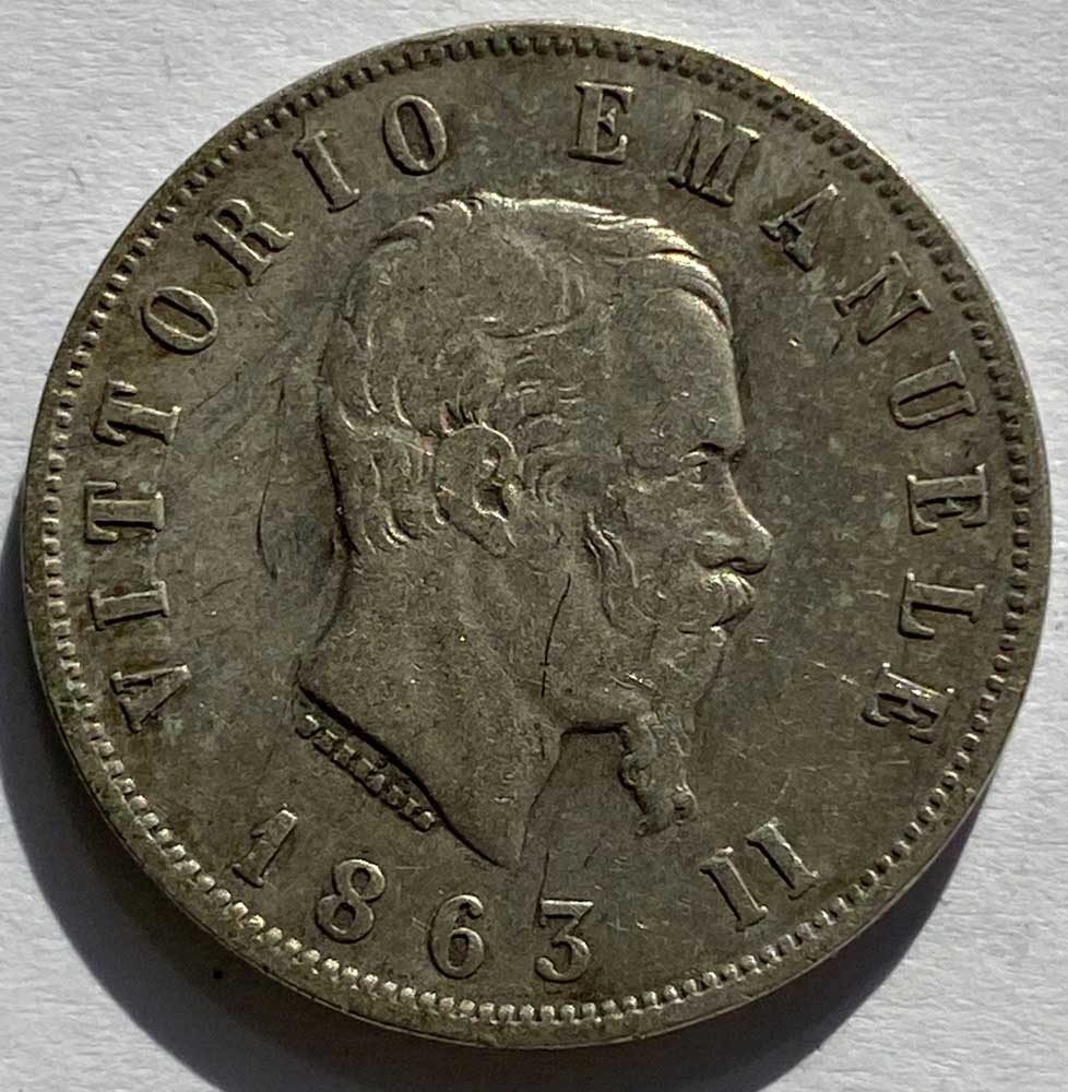 1863 Italian Silver 2 Lire