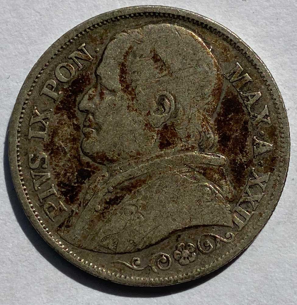 1867 Papal States Pius IX Silver Two Lire