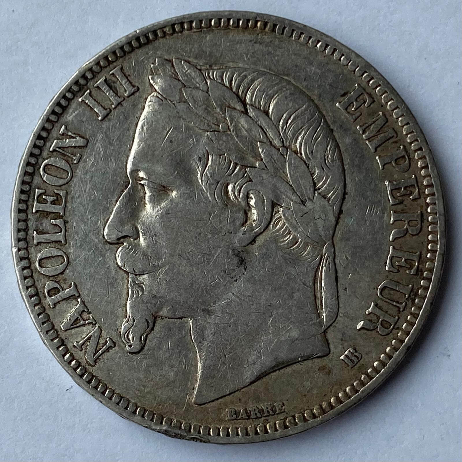 1869 France Napoleon III Silver 5 Franc Metal: SilverSummary