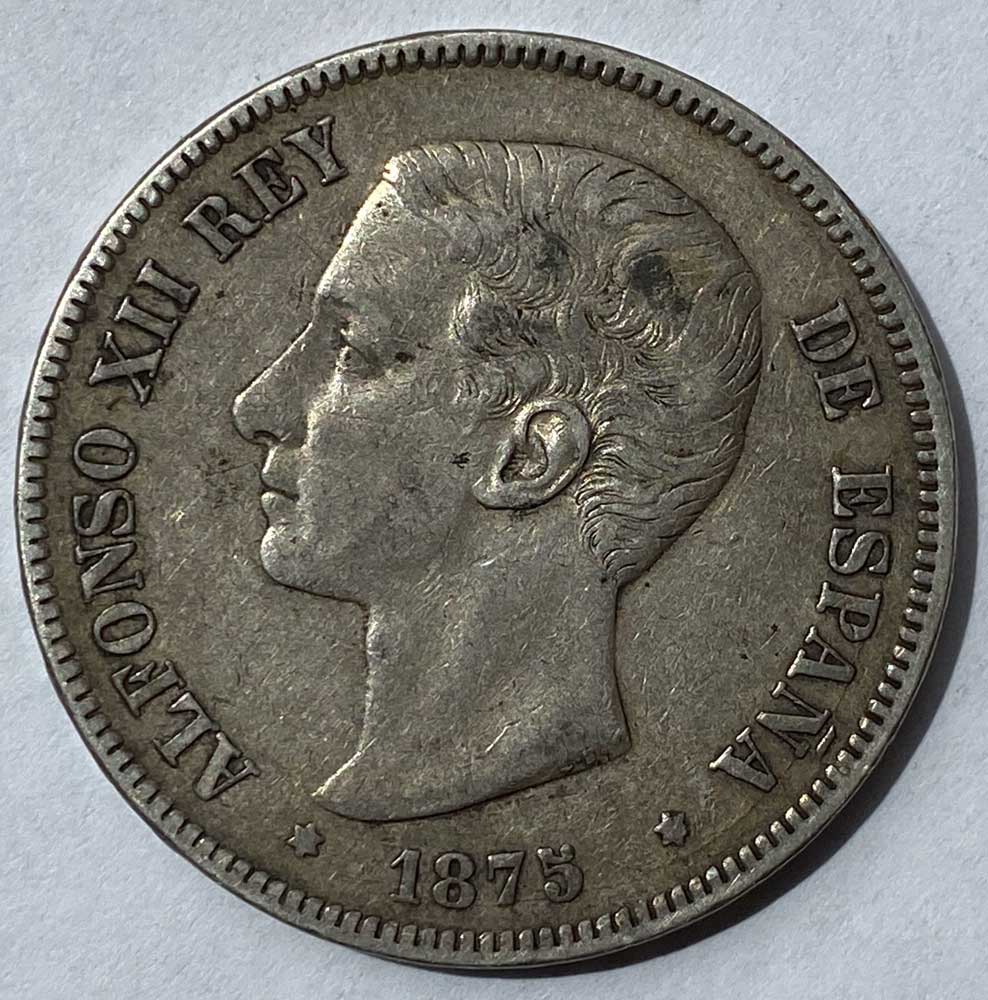 1875 Spain Alfonso XII Silver Five Pesetas