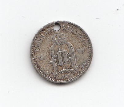 1877 Sweden Silver 25 Ore Metal: SilverSummary