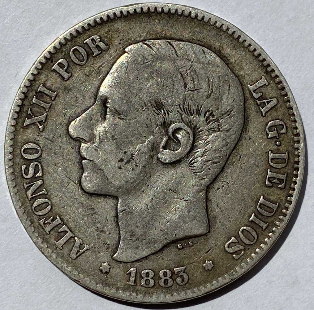 1883 Spain Alfonso XII Silver 5 Pesetas