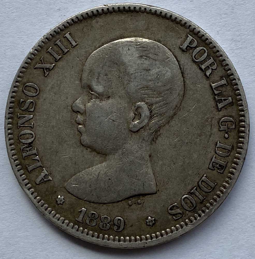 1889 Spain Alfonso XIII Silver 5 Pesetas