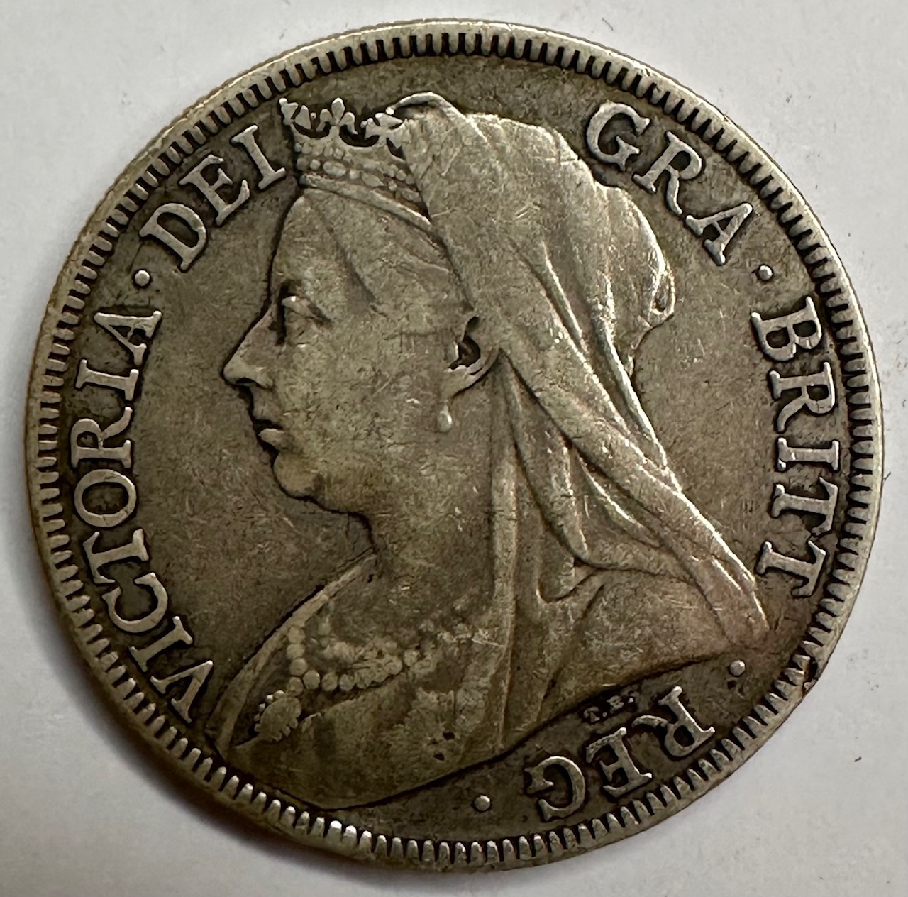 Queen Victoria's widow head can be seen on the obverse of the coin, with a crowned shield on the reverse.