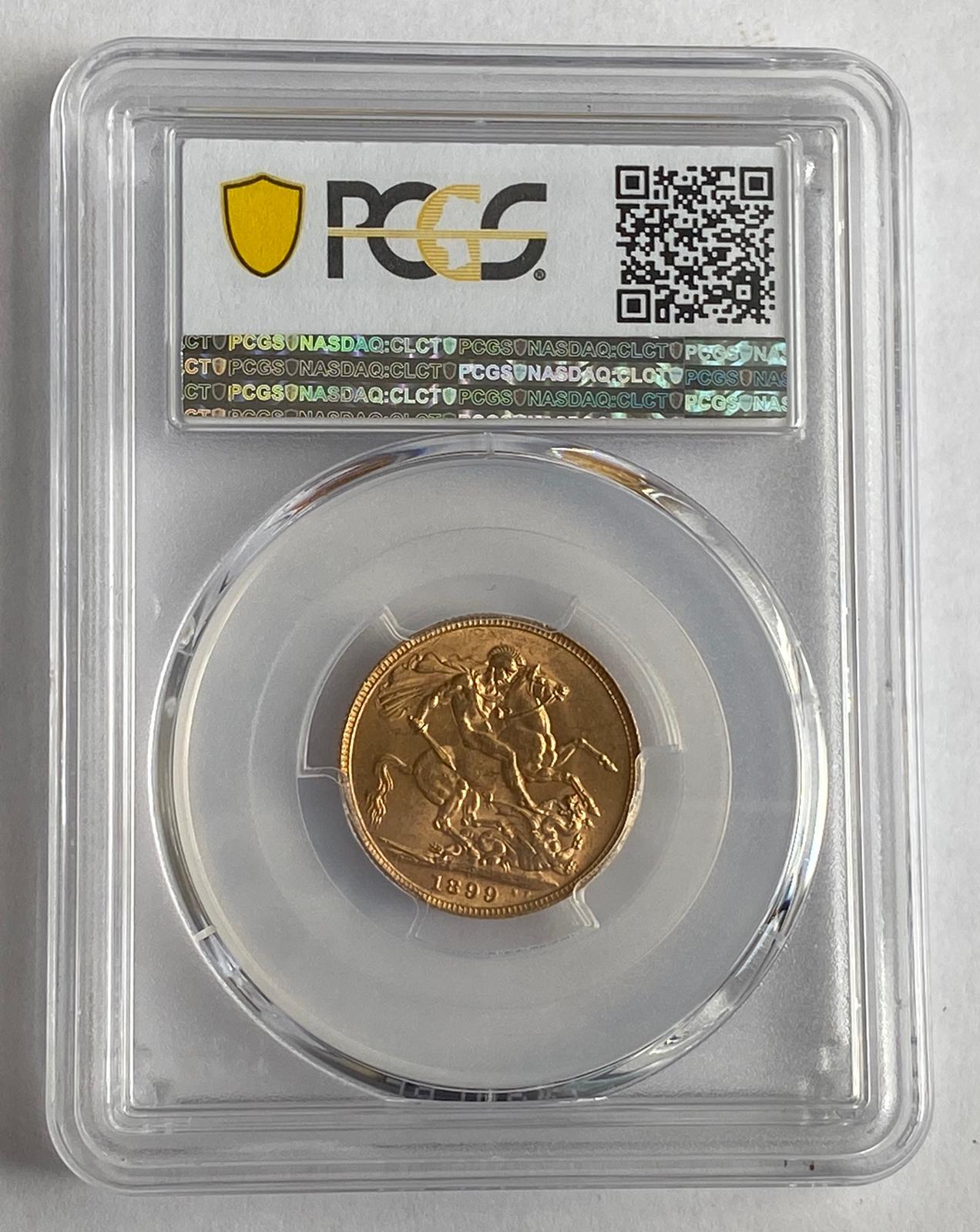 The 1899 Perth Sovereign has been graded by PCGS as MS62. This was the first year a sovereign was minted in Perth, Australia. Only 690,922 sovereigns were produced at the Perth mint in 1899. The 1899 Perth Sovereign PCGS MS62 is made of 22 carat gold, and weighs 7.98 grams. Benedetto Pistrucci's famous portrayal of St George and the dragon can be seen on the reverse of the sovereign (A small 'P' just above the date indicates the coin was minted in Perth, Australia). Queen Victorias Widow head can be seen on the obverse of the coin.Summary