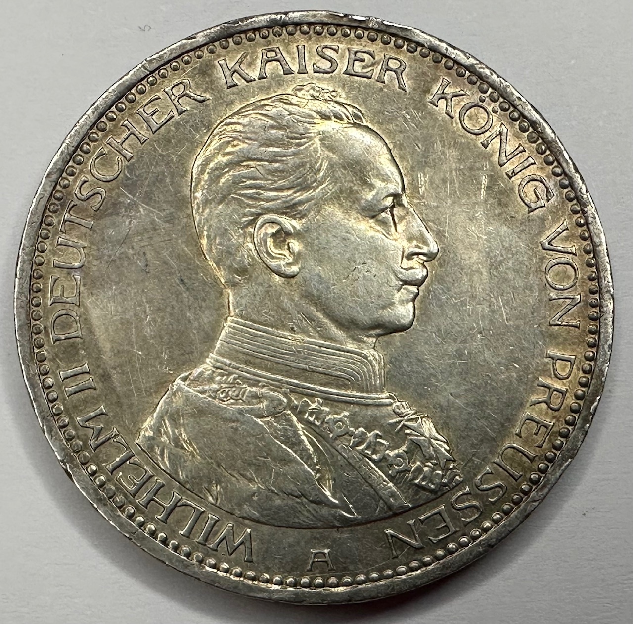 Wilhelm II is depicted on the obverse of the coin, with the German eagle shown on the reverse.