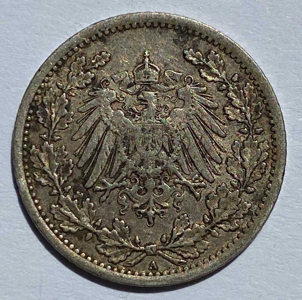 1915 Germany Wilhelm II Silver 1/2 Mark