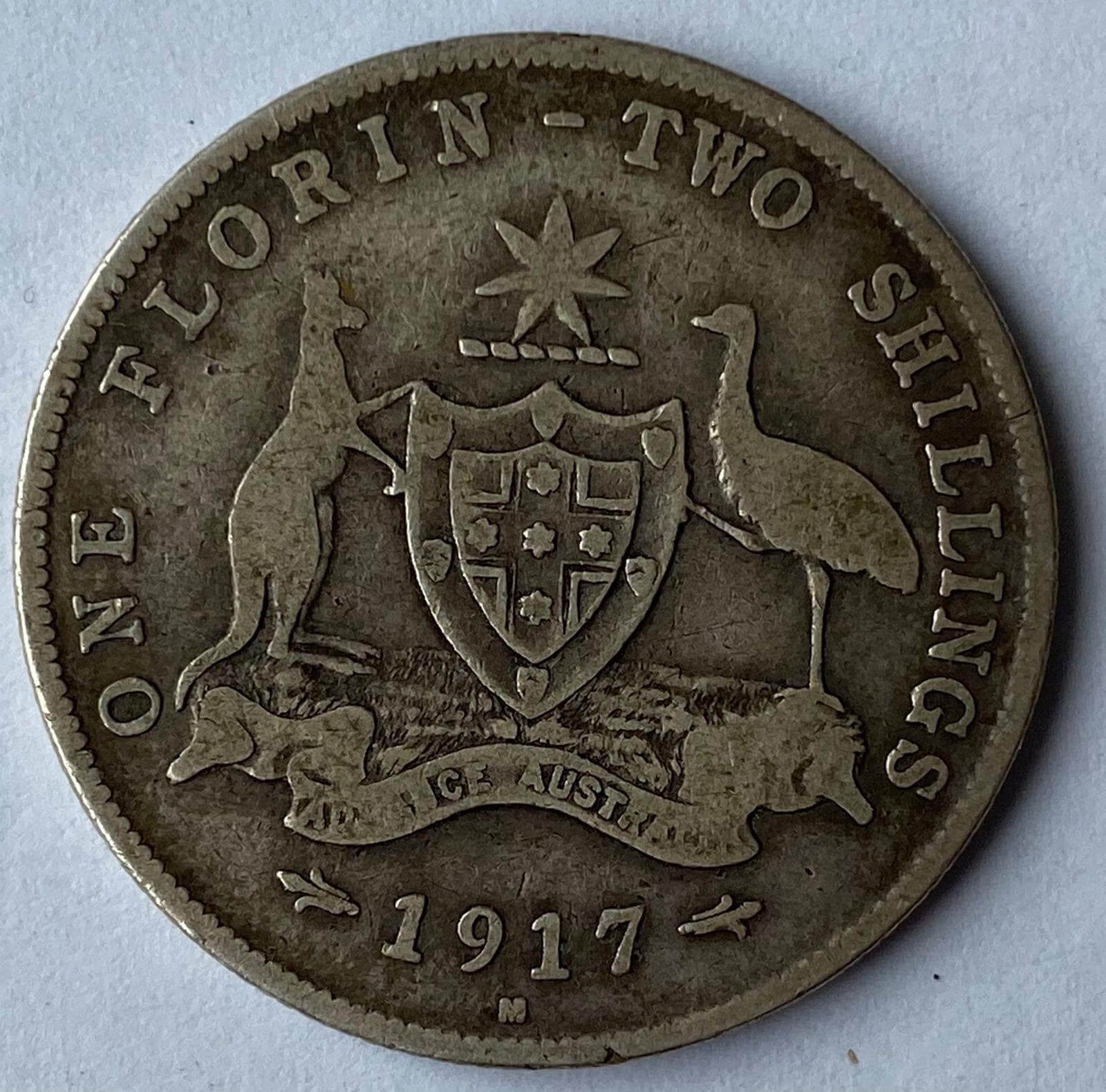 1917 Australia George V Silver Florin Coin metal: SilverSummary