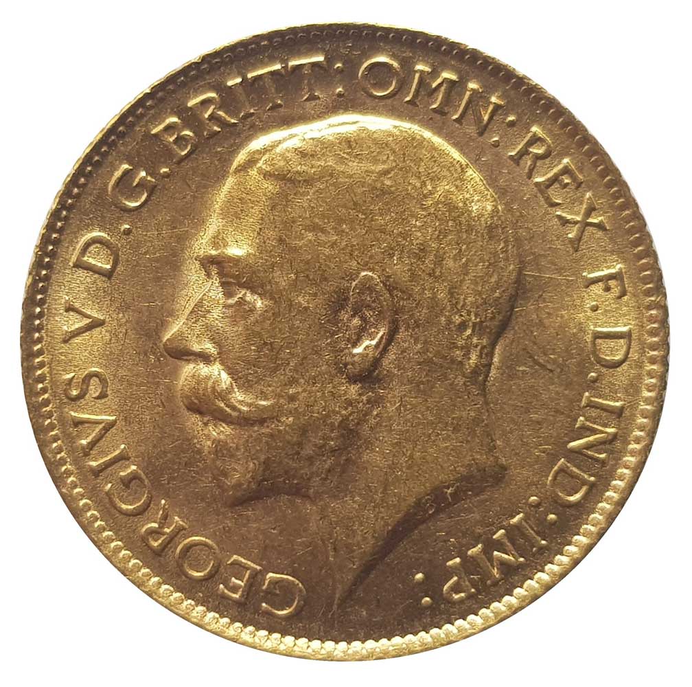 Benedetto Pistrucci's famous portrayal of St George slaying the dragon can be seen on the reverse of the coin. A small 'SA' just above the date indicates the half sovereign was produced in Pretoria, South Africa. King George V's portrait can be seen on the obverse of the coin.Summary
