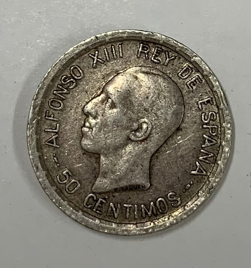 1926 Spain Silver 50 Centimos Coin metal: SilverSummary