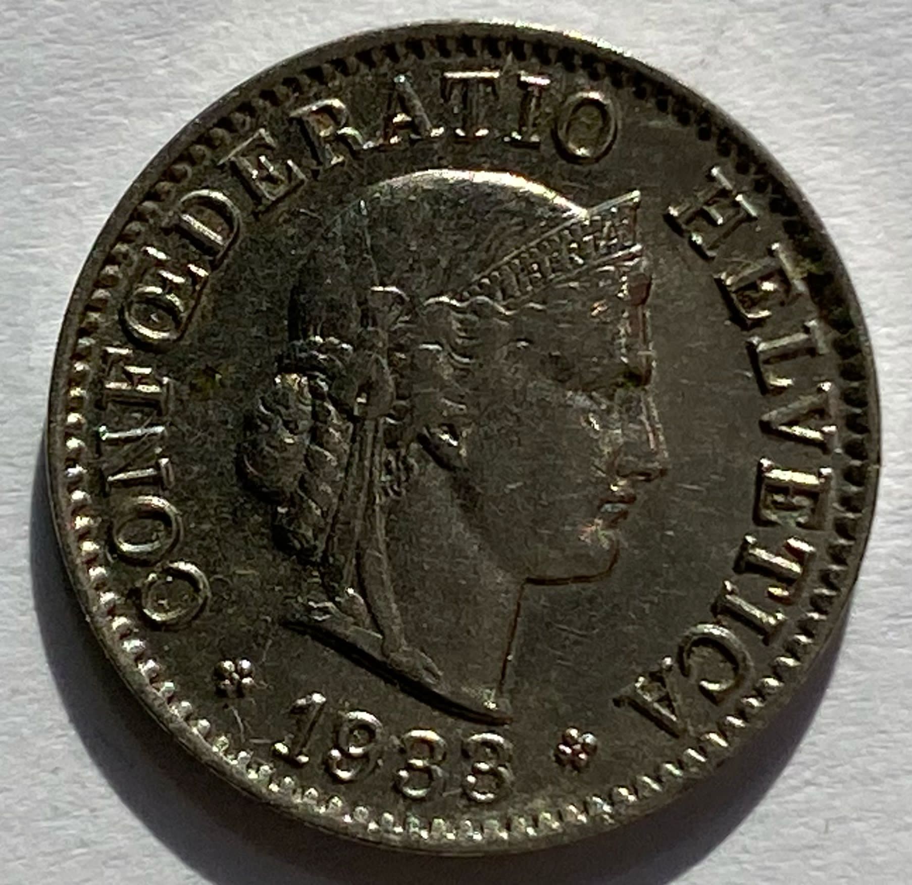 1933 Swiss Silver 5 Cents