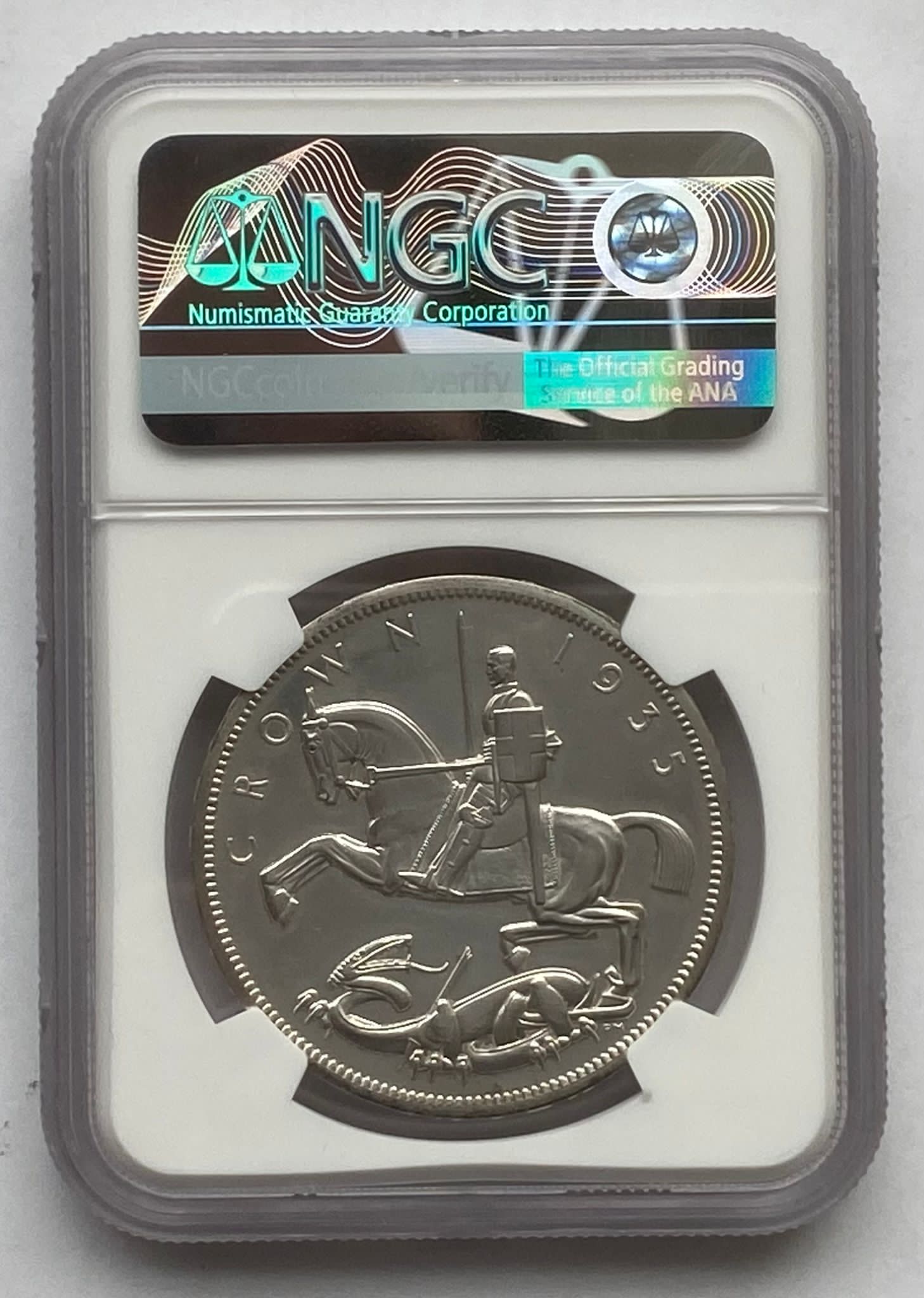 To commemorate the silver jubilee of King George V and Queen Mary, the Royal Mint issued a special one off crown, widely known as the 'rocking horse' crown due to the deco reverse design of St George, and the similarities with a toy rocking horse.