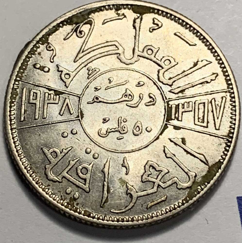 1937 Iraq Silver 50 Fils Coin metal: .500 silverSummary