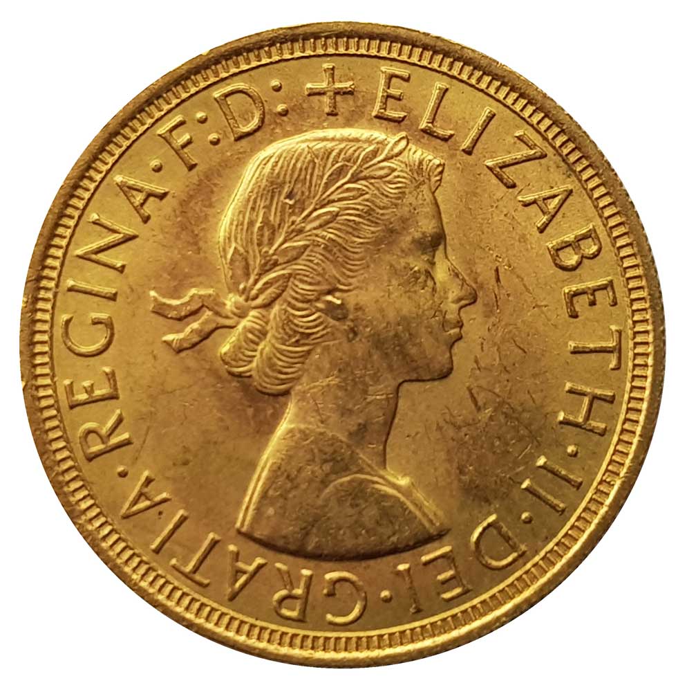 Looking to SELL GOLD SOVEREIGNS? Please visit our What We Buy - Sovereigns The 1957 sovereign would make an ideal birthday present or special gift. Queen Elizabeth II Brilliant Uncirculated sovereigns were first produced in 1957, and could be purchased from high street banks and gold bullion dealers. Sovereigns have been produced most years through the Queen’s reign, with the exception of a few years. The first gold sovereign issued depicting Queen Elizabeth II was the 1953 Proof. This was a special strike, and is an incredibly rare sovereign. Since 2000, a Brilliant Uncirculated gold sovereign has been issued by the Royal Mint each year, alongside a proof example. Most sovereigns issued during the reign of Queen Elizabeth II depict Benedetto Pistrucci’s famous portrayal of St George and the dragon on the reverse of the coin.