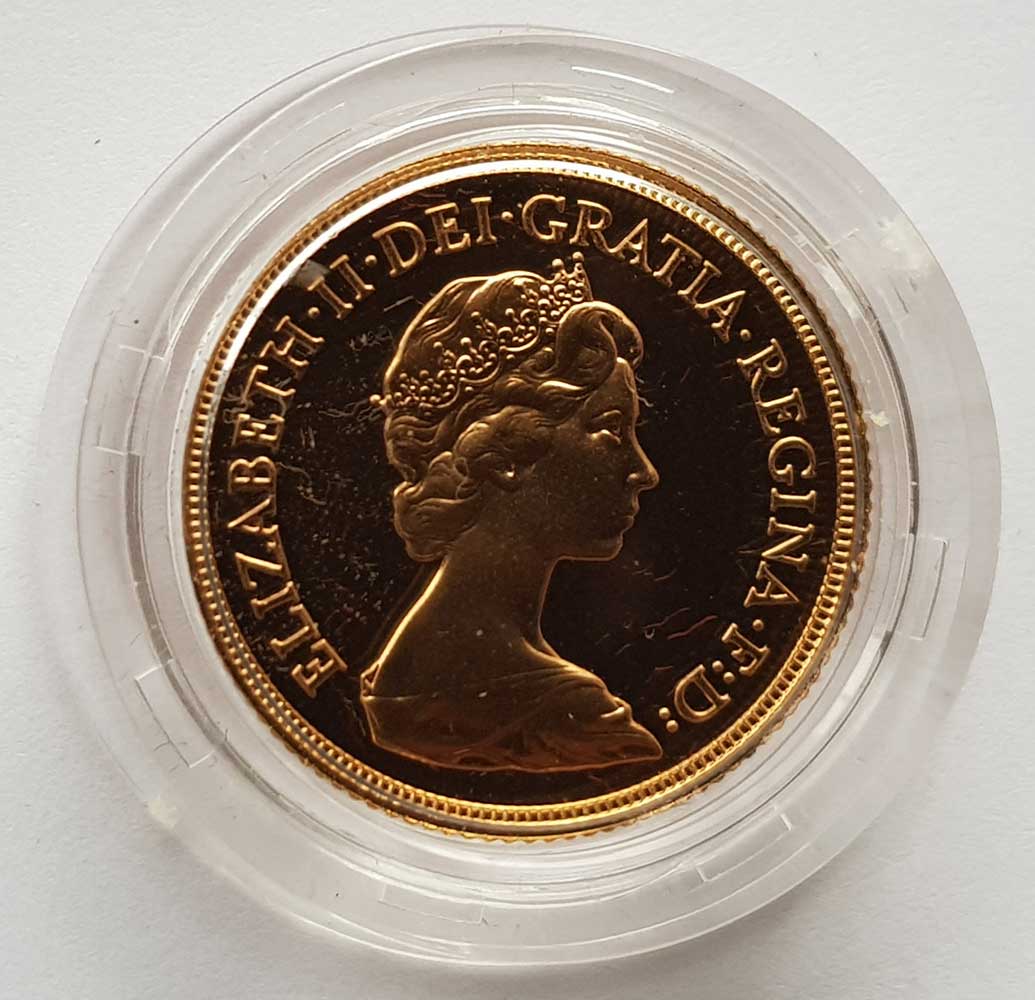 1983 Gold Proof Sovereign Benedetto Pistrucci's famous portrayal of St. George slaying the dragon is depicted on the reverse of the coin. Queen Elizabeth II's second portrait can be seen on the obverse, designed by Arnold Machin. The sovereign is made of 22 carat gold, and weighs 7.98 grams. It contains 0.2354 ounce of fine gold. The 1983 gold proof sovereign is housed in a Royal Mint acrylic screw top capsule, presented in its Royal Mint red leatherette case, accompanied with a certificate of authenticity. Only 10,000 individually boxed proof sovereigns were issued by the Royal Mint in 1983. Looking to SELL GOLD SOVEREIGNS? Please visit our Prices We Pay – Sovereigns Page The first modern gold proof sovereign was issued by the Royal Mint in 1979. Since then, a gold proof sovereign has been issued every year by the Royal Mint. Proof sovereigns are superior in quality compared to standard bullion sovereigns, with highly polished fields, and cameo raised portraits on the obverse and reverse. Gold proof sovereigns are released in a Royal Mint presentation case with a certificate of authenticity. Proof sovereigns often depict Benedetto Pistrucci's famous portrayal of St George and the dragon on the reverse of the coin. The reverse design has been changed several times for special commemorative years, such as the 1989 500th anniversary of the sovereign, and the 2002 Golden Jubilee. M J Hughes Coins are members of the British Numismatic Trade Association – www.bnta.net. We are coin dealers based in Alton, Hampshire (Where we have a shop location). We are always interested in purchasing any coins that you may have for sale, particularly Royal Mint issues and gold coins. We are happy to make no obligation offers, and purchase from a single coin to an entire gold coin collection. You would be more than welcome to visit our shop, or we are happy to travel to you. Please get in contact with us if you would like to discuss further.Summary