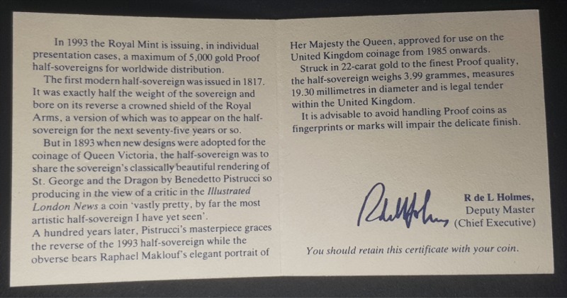 The mintage for the 1993 Gold Proof Half-Sovereign was only 5000 pieces.