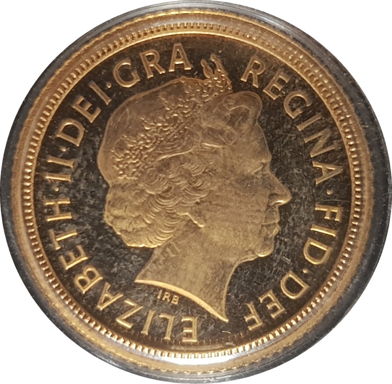 The Obverse is the Monarch's head (Elizabeth II) and the Reverse is the famous St George and the Dragon by Benedetto Pistrucci.