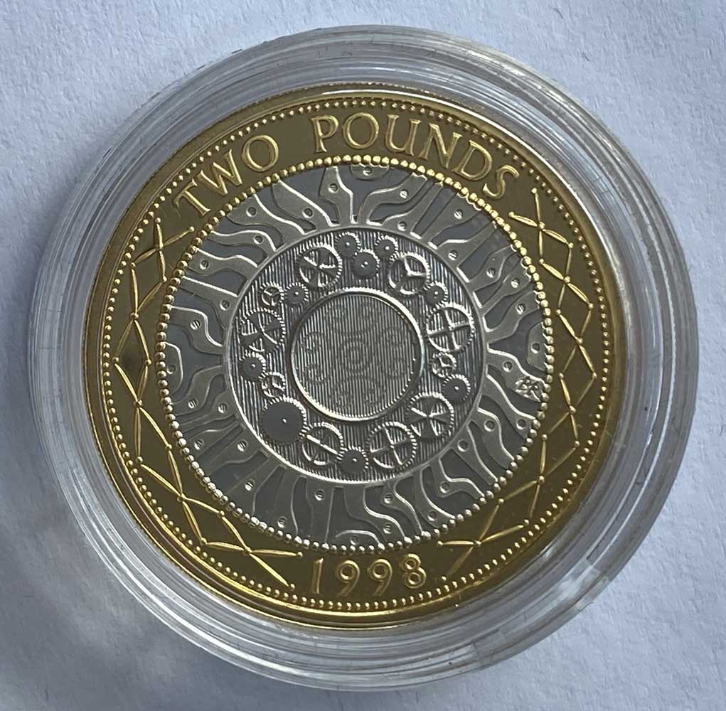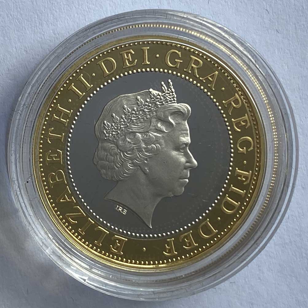 Sterling Silver .925 Weight: 12 g Diameter: 28.40 millimeters The intricate reverse design comprises four quite different, but complementary, concentric circles radiating outwards from the heart of the coin, and embodies mankind's extraordinary drive, determination and creative genius. Designed by Bruce Rushin, this design has been issued each year since 1997. The obverse bears the fourth definitive UK coin portrait of Queen Elizabeth II designed by Ian Rank BroadleySummary