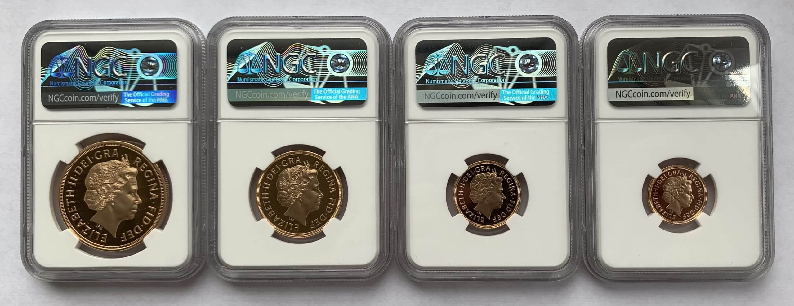 2002 4 Coin Gold Proof Sovereign Set PR70