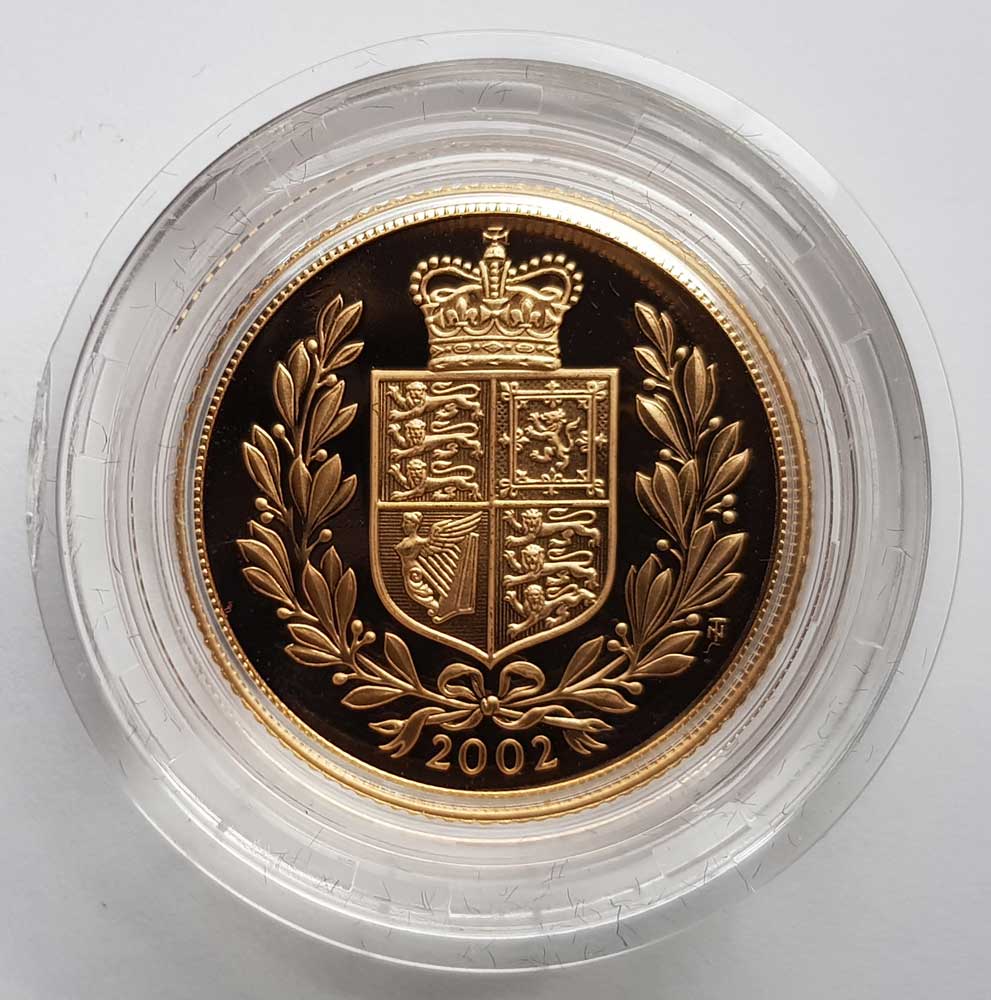 To commemorate the Golden Jubilee of Queen Elizabeth II, a new design was created for the 2002 sovereign series. The 2002 sovereign depicts The Shield of Arms of Our United Kingdom of Great Britain and Northern Ireland within an open wreath of laurel, ensigned by Our Royal Crown, on the reverse of the coin (Designed by Timothy Noad). Queen Elizabeth II's fourth portrait can be seen on the obverse of the coin, desIgned by Ian Rank Broadley. The sovereign is made of 22 carat gold, and weighs 7.98 grams. It contains 0.2354 ounce of fine gold. Looking to SELL GOLD SOVEREIGNS? Please visit our Prices We Pay - Sovereigns Page The 2002 sovereign would make an ideal birthday present or special gift. Queen Elizabeth II Brilliant Uncirculated sovereigns were first produced in 1957, and could be purchased from high street banks and gold bullion dealers. Sovereigns have been produced most years through the Queen’s reign, with the exception of a few years. The first gold sovereign issued depicting Queen Elizabeth II was the 1953 Proof. This was a special strike, and is an incredibly rare sovereign. Since 2000, a Brilliant Uncirculated gold sovereign has been issued by the Royal Mint each year, alongside a proof example. The sovereign would have been issued by the Royal Mint in either a blister pack, or a bullion tube. Most sovereigns issued during the reign of Queen Elizabeth II depict Benedetto Pistrucci’s famous portrayal of St George and the dragon on the reverse of the coin. M J Hughes Coins are members of the British Numismatic Trade Association - www.bnta.net. We are coin dealers based in Alton, Hampshire (Where we have a shop location). We are always interested in purchasing any coins that you may have for sale, particularly Royal Mint issues and gold coins. We are happy to make no obligation offers, and purchase from a single coin to an entire gold coin collection. You would be more than welcome to visit our shop, or we are happy to travel to you. Please get in contact with us if you would like to discuss further.Summary