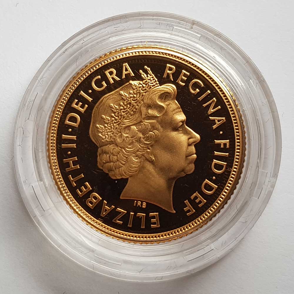 2005 Gold Proof Sovereign Timothy Noad's new portrayal of St. George slaying the dragon is depicted on the reverse of the coin. Queen Elizabeth II's fourth portrait can be seen on the obverse, designed by Ian Rank-Broadley. The sovereign is made of 22 carat gold, and weighs 7.98 grams. It contains 0.2354 ounce of fine gold. The 2005 gold proof sovereign is housed in a Royal Mint acrylic screw top capsule, presented in its Royal Mint velvet case with outer black card box, accompanied with an individually numbered certificate of authenticity. Only 12,500 individually boxed proof sovereigns were issued by the Royal Mint in 2005. Looking to SELL GOLD SOVEREIGNS? Please visit our Prices We Pay – Sovereigns Page The first modern gold proof sovereign was issued by the Royal Mint in 1979. Since then, a gold proof sovereign has been issued every year by the Royal Mint. Proof sovereigns are superior in quality compared to standard bullion sovereigns, with highly polished fields, and cameo raised portraits on the obverse and reverse. Gold proof sovereigns are released in a Royal Mint presentation case with a certificate of authenticity. Proof sovereigns often depict Benedetto Pistrucci's famous portrayal of St George and the dragon on the reverse of the coin. The reverse design has been changed several times for special commemorative years, such as the 1989 500th anniversary of the sovereign, and the 2002 Golden Jubilee. M J Hughes Coins are members of the British Numismatic Trade Association – www.bnta.net. We are coin dealers based in Alton, Hampshire (Where we have a shop location). We are always interested in purchasing any coins that you may have for sale, particularly Royal Mint issues and gold coins. We are happy to make no obligation offers, and purchase from a single coin to an entire gold coin collection. You would be more than welcome to visit our shop, or we are happy to travel to you. Please get in contact with us if you would like to discuss further.Summary