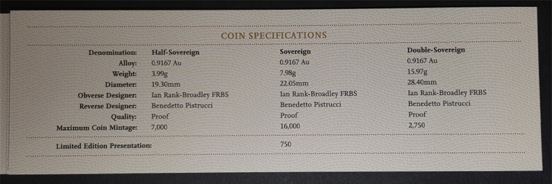 The 2010 Gold Proof Sovereign Three Coin Collection Premium set consists of:- 2010 Proof Double Sovereign (Gold £2). Weight 15.97g. Mintage 2.750.