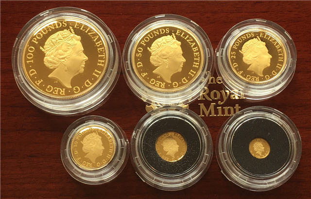 The 2015 Gold Proof Britannia 6-Coin Set consists of: