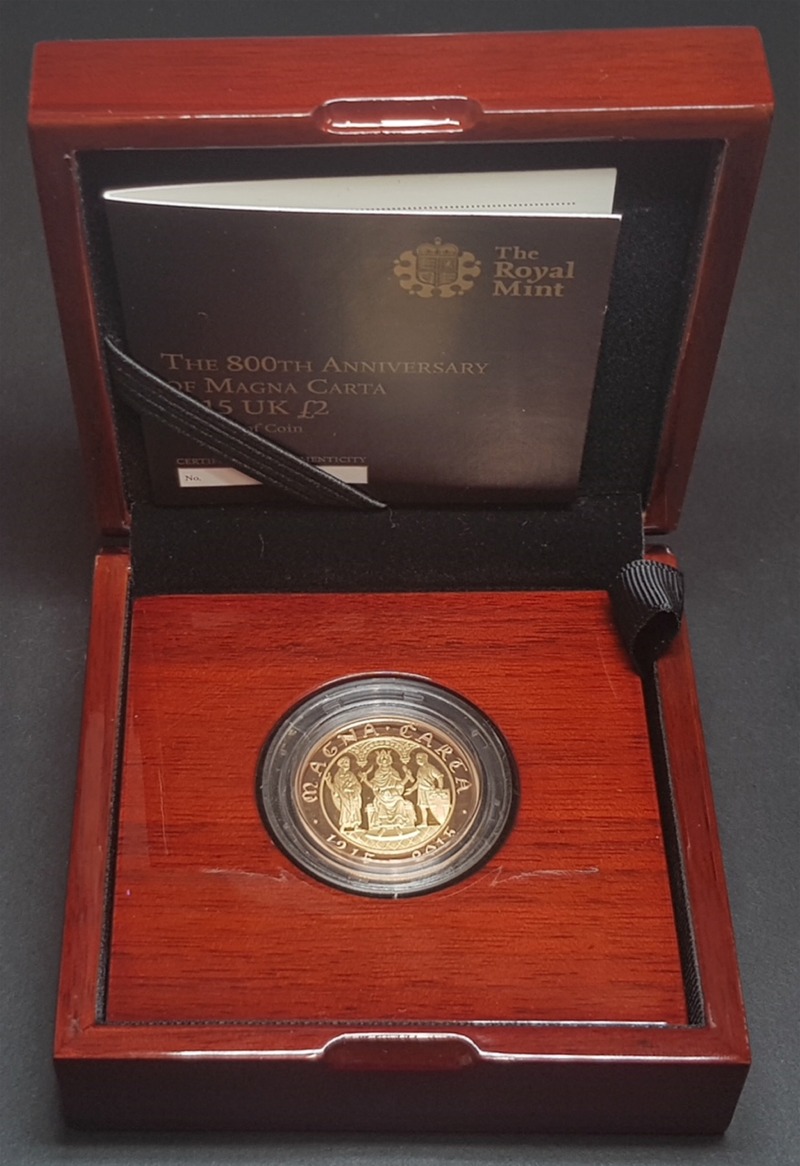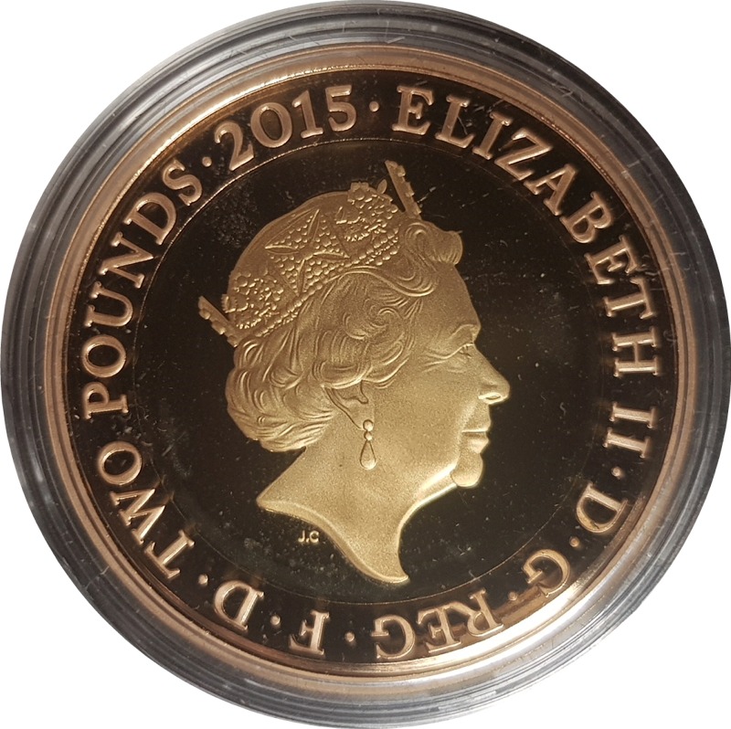 The 2015 Gold Two Pound Magna Carta celebrates the 800th anniversary of the signing of the Magna Carta charter. Signed by King John at Runnymede (near Windsor) in 1215 it is the basis of the many liberties enjoyed even today.