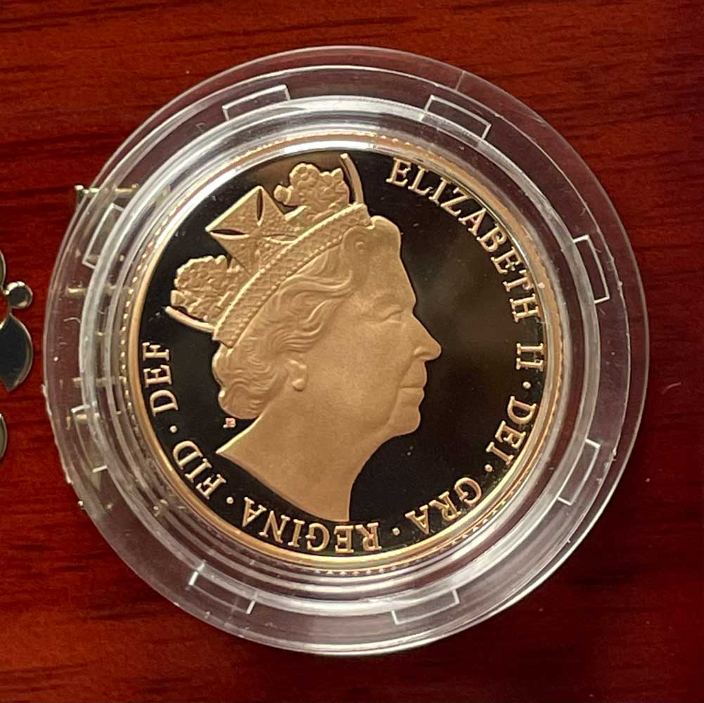 Benedetto Pistrucci’s portrayal of St. George slaying the dragon is depicted on the reverse of the coin.
