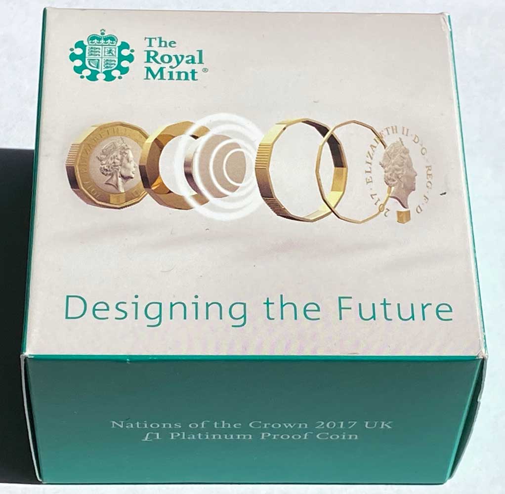 The 2017 Nations of the Crown Platinum Proof One Pound Piece is the first 12 sided £1 piece. The one pound piece is made of 0.999 fine platinum, and weighs 21.56 grams. The coin comes in its original Royal Mint presentation case with a certificate. Only 250 pieces were issued.Summary