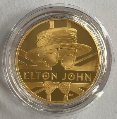 The solo artist Elton John features on the second of the 'Music Legends' issue. A design by Bradley Morgan Johnson depicts Elton John in a hat, bow tie with notation glasses. Jody Clarks fifth head portrayal of Queen Elizabeth can be seen on the obverse of the coin. The £100 piece is made of 24 carat gold (0.999 fine) and weighs 31.1 grams. The coin comes in its original presentation box, complete with outer card sleeve and certificate of authenticity. Only 250 pieces were issued by the Royal Mint. The coin sold out within a few hours! The Royal Mint has issued a range of coins with the design, including a gold proof one kilo coin, gold proof two ounce, gold proof quarter ounce, silver proof two ounce, silver proof one ounce and a number of cupro nickel coin packs.Summary