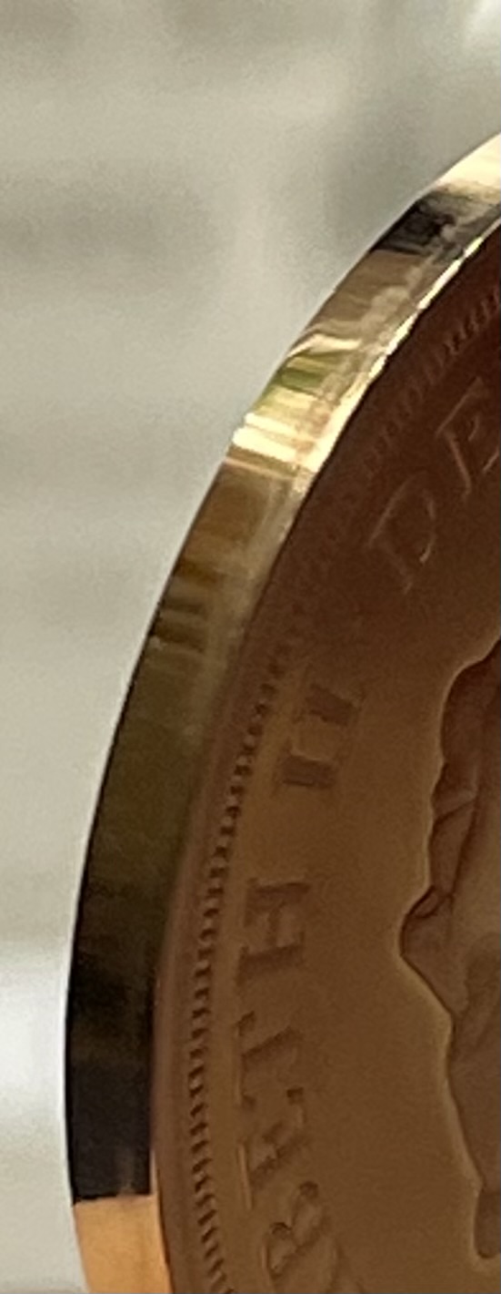 Unlike other standard/proof sovereign issues, the Strike of the Day sovereign has a plain edge.