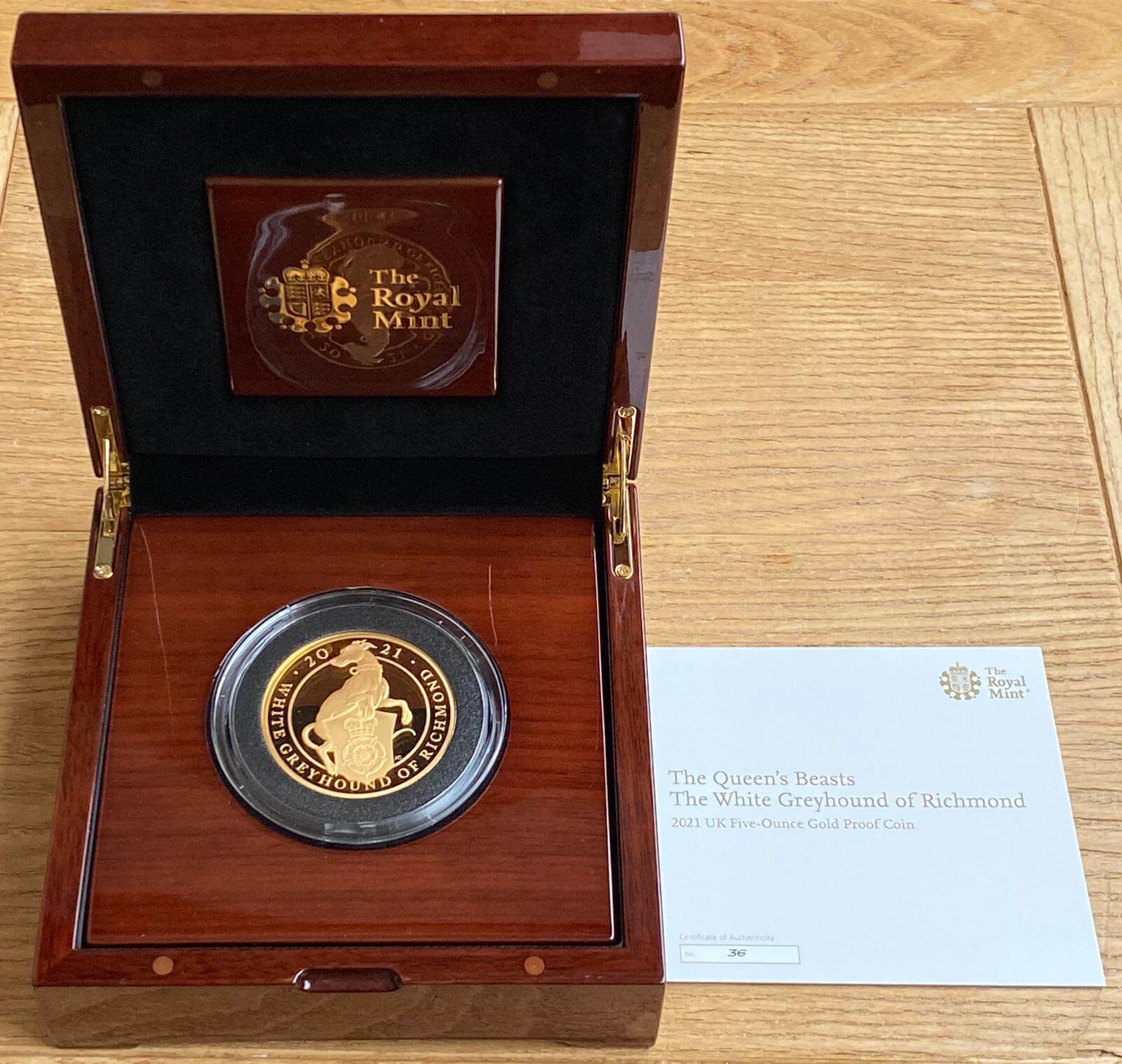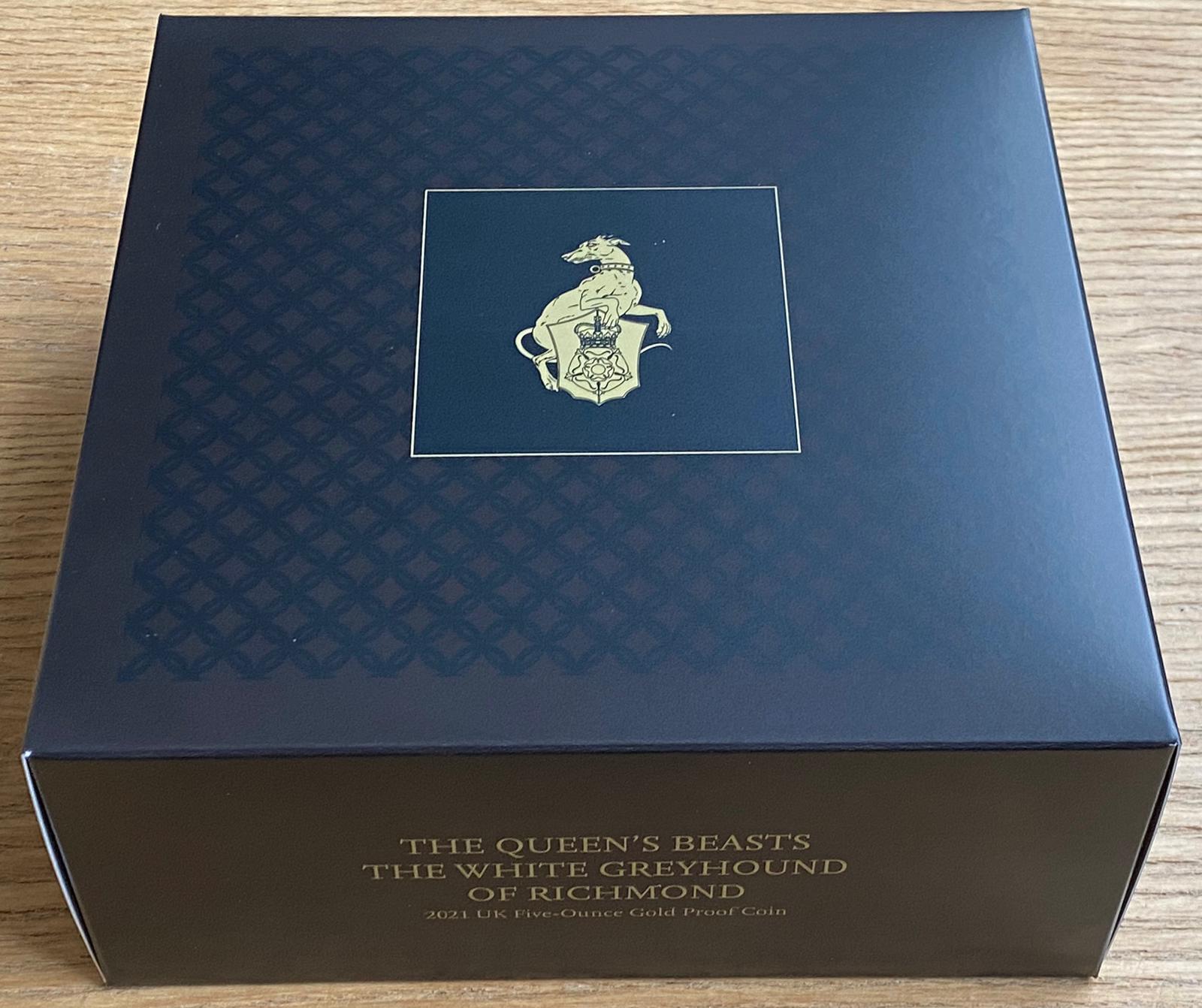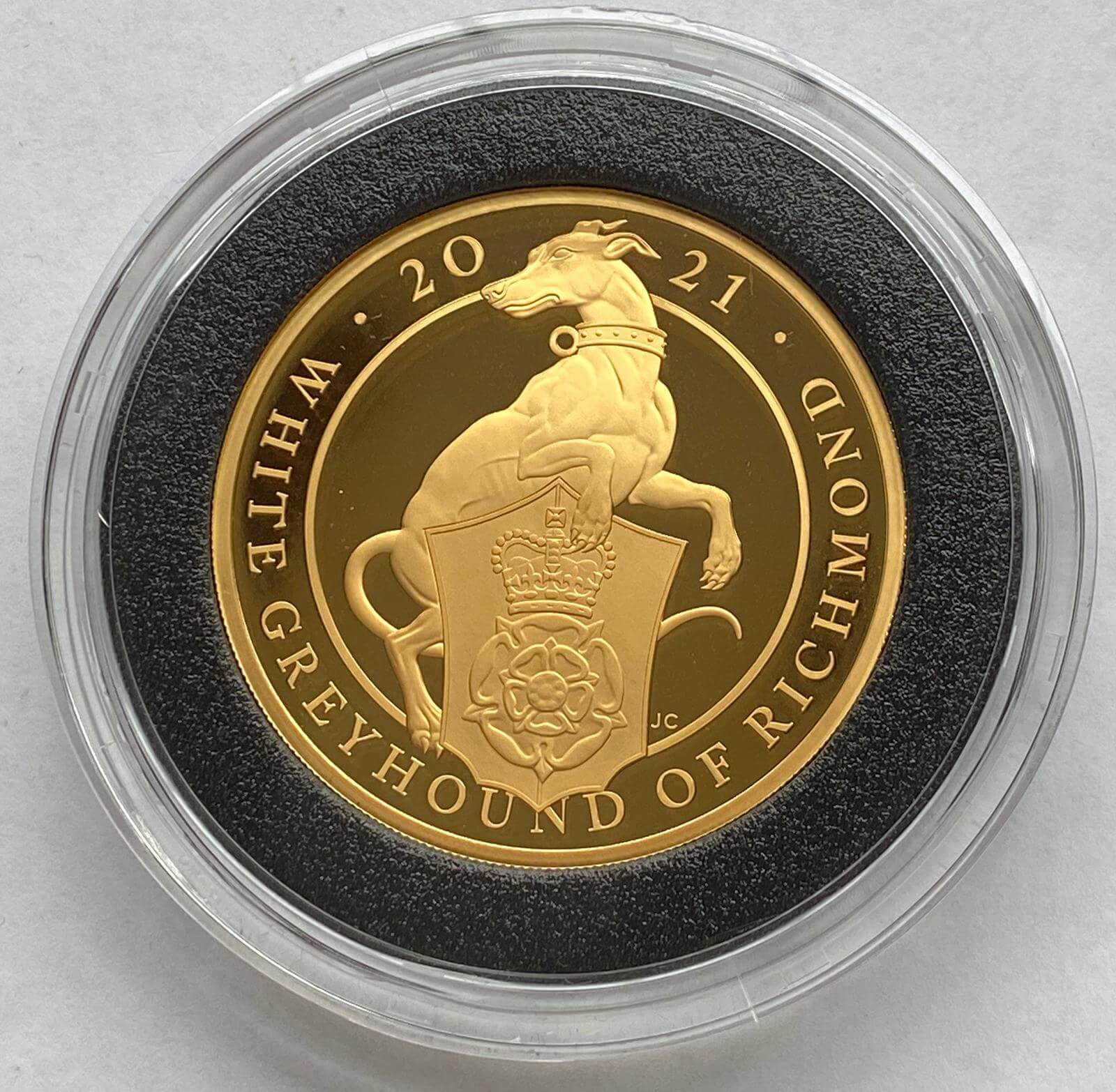 2021 Queens Beasts White Greyhound of Richmond Gold Proof Five Ounce £500