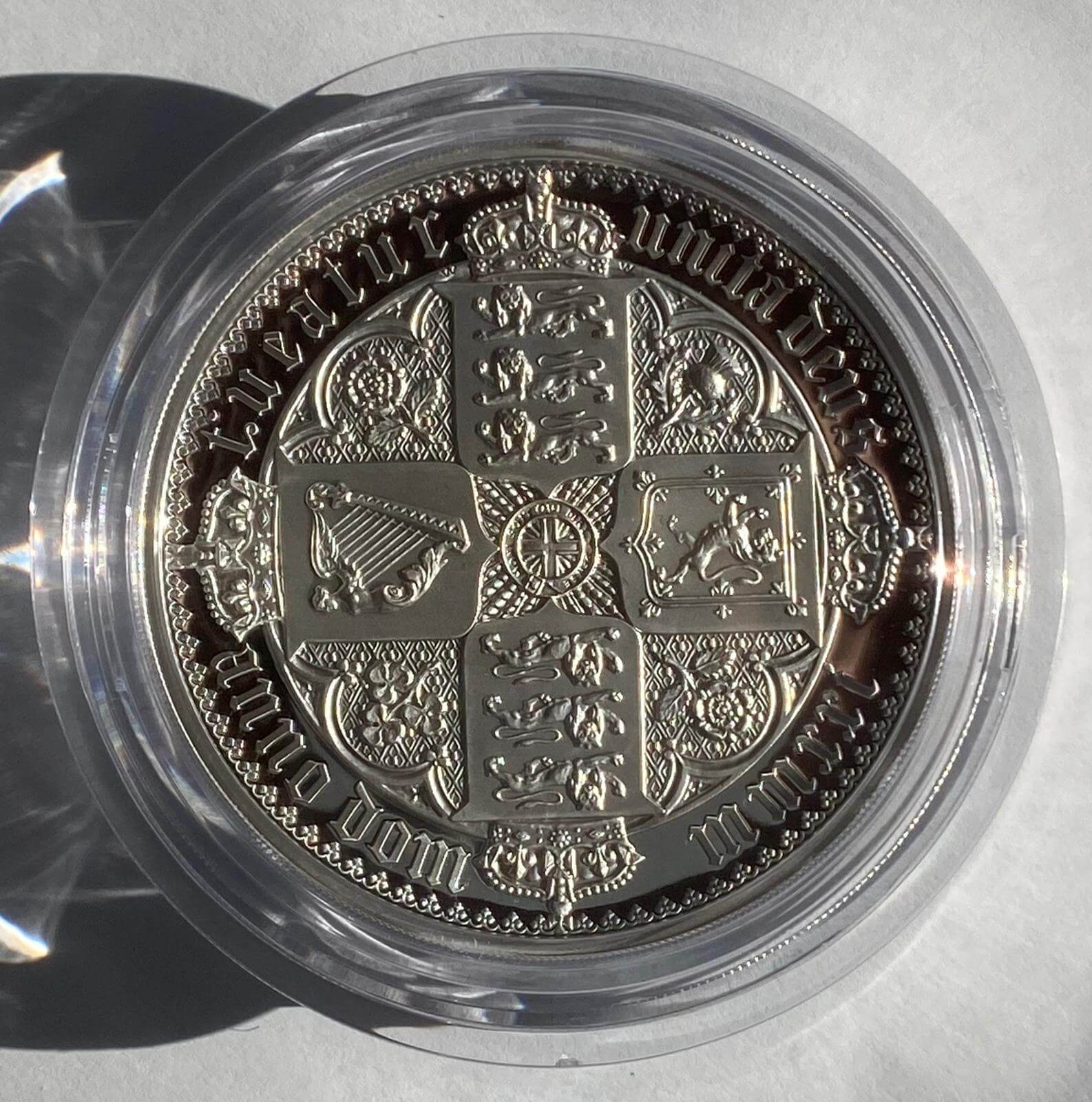 The 2021 Royal Mint Gothic Crown Quartered Arms Silver Proof Ten Ounce is made of 0.999 fine silver, and weighs 312.6 grams. The coin had a mintage of only 225, and has proved to be one of the most popular Mint issues this year. The 10oz silver proof coin is housed in its original Royal Mint presentation case with outer card box, accompanied with a certificate of authenticity. Other coins issued in the series include a Gothic Crown Quartered Arms gold proof 10kg, 5kg, 2kg, 1kg, 10oz, 5oz, 2oz, and a silver proof 2kg, 1kg, 10oz, 5oz and 2oz.Summary