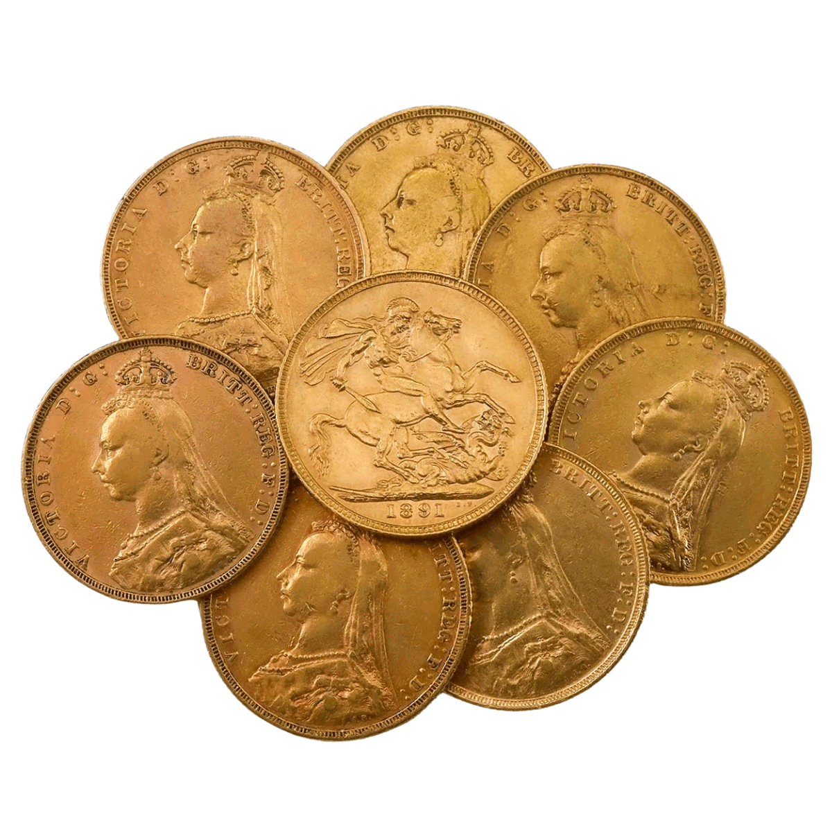 Gold sovereigns are world famous, known for their accuracy and reliability as a gold bullion coin. During the days of the British Empire, gold sovereigns were minted in all corners of the world, to include London, Ottawa (Canada), Pretoria (South Africa), Perth (Australia), Sydney (Australia), Melbourne (Australia) and Bombay (India). A small mintmark on each gold sovereign determines where the coin was issued (No mintmark present for London).